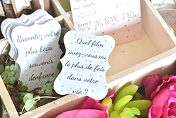 Pourquoi ne pas placer des boîtes à jeux sur chaque tables des invités ? Ils pourront ainsi apprendre à se connaître via des questions marrantes et ludiques.