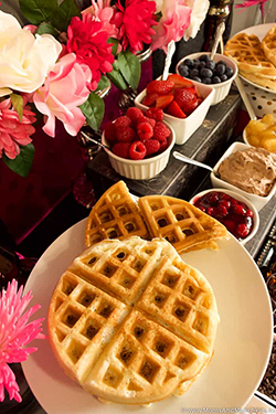 - Des gaufres : classiques et au chocolats, selon les goûts. Elles devront par contre être réalisées le jour même pour ne pas être sèches. Pour cela, vous pouvez par exemple disposer des gaufriers et la pâte à disposition de vos invités, qui les réaliseront eux-mêmes.