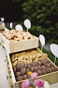Parfait pour les plus petits comme pour les plus grands, le bar à cookies se décline en version mariage ! Aux pépites de chocolat noir, au lait, blanc avec des noix de macadamia, de pécan, des éclats de caramel…tout le monde appréciera de les déguster. Vous pourrez les réaliser vous-mêmes la veille de votre mariage (ou demander à un proche de les préparer) mais aussi les commander directement dans une pâtisserie. Pour vous aider un peu, voici la meilleure recette de cookie New-Yorkais que j’ai mangé, par Levain Bakery.