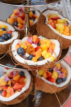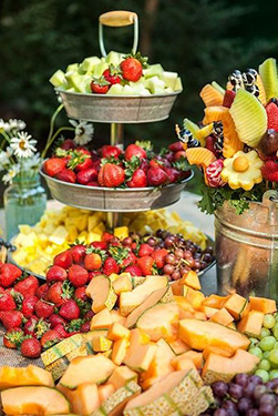 Parfait pour un mariage en plein été, le bar à fruit permettra à vos invités de déguster une touche fraîche, légère qui leur apportera l’énergie nécessaire pour danser toute la nuit ! Frais, en brochette, en salade, en compote, le fruit sera de la partie, et selon toutes vos envies.