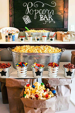 Vous pouvez choisir de l’organiser vous-même, il vous faudra alors des pop-corn de différents parfums, quelques confiseries pour l’agrémenter (bonbons, pépites de chocolat…) et des sachets en papier. Rien de plus facile !