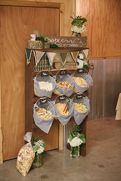 Si vous avez prévu un mariage sur le thème du cinéma ou du cirque, ce bar à pop corn est fait pour vous ! Cette animation culinaire sera ainsi en parfaite harmonie avec votre thème. Le pop corn sucré est déclinable en plusieurs saveurs, classique, caramel, chocolat, vanille ou encore fraise. Les goûts sont nombreux et vos convives pourront s’amuser à créer leur propre sachet en mélangeant les parfums. Bien évidemment, ce bar fera également le bonheur des plus petits !