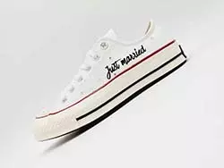 La collection mariage de converse vous propose également des baskets assorties spéciales mariés. Vous pouvez choisir l’option 100 % blanche, avec une bande colorée, une bande et la languette colorée, ou un modèle tout en couleur, puis les faire broder selon vos envies. Vous pouvez sinon choisir des modèles déjà existants.