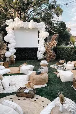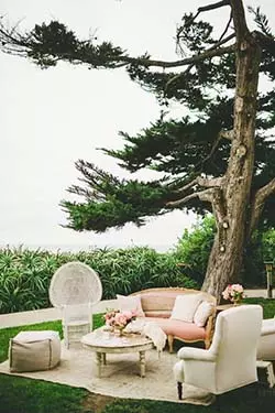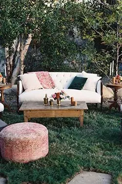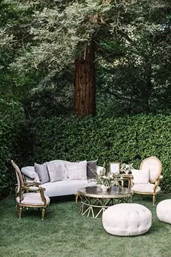 - Afin de créer un coin détente pendant la première partie de votre cérémonie, positionnez du mobilier confortable pour vos convives. Canapés, grands fauteuils, tables, chaises, poufs, coussins, tout doit être pensé pour reposer vos invités. Cependant, ce petit coin cocooning doit être réalisé dans un endroit stratégique de votre extérieur. Éloigné du bruit et de la chaleur, vous pouvez aménager cet espace sous un grand arbre ou sous des parasols.