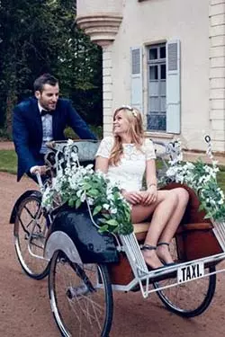 Voiture de sport, limousine, voiture de collection, vélo, calèche, carrosse, ou pourquoi pas en bateau ? Vous pouvez soigner votre entrée des mariés à la mairie, à l’église ou sur votre lieu de réception en choisissant un moyen de transport original ou atypique. En accord avec votre thème de mariage ou juste pour le délire, faites-vous plaisir !