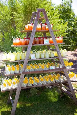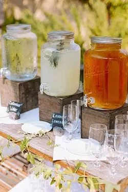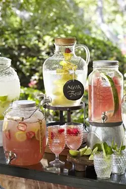 Il vous est possible de choisir quelques recettes de limonades maisons (3 à 4), comme par exemple, une citronnade, une orangeade, une à la fraise et au basilic, une à la fleur de sureau… Disposez-les dans de belles fontaines à boissons et agrémentez le tout de fruits frais. Ajoutez à cela de jolis contenants en verre et des pailles colorées, rafraîchissement garanti !