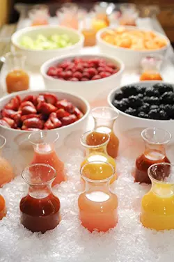 Ce bar est un incontournable des mariages d’été et de printemps. Remplis de fruits et donc de vitamines, ils revigoreront vos invités et les feront danser jusqu’au bout de la nuit ! Ils permettent également une grande diversité, le tout avec peu de matériel. Il vous faudra: