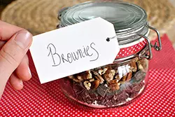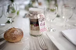 Réalisez des bocaux comportant tous les ingrédients secs pour fabriquer des cookies, brownies ou vos biscuits préférés ! Une fois chez eux, vos invités n’auront plus qu’à y ajouter les ingrédients liquides et à faire cuire. Personnalisez les étiquettes et imprimez-y la recette pour qu’ils puissent la refaire plus tard. Une belle manière de partager avec vos convives !