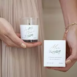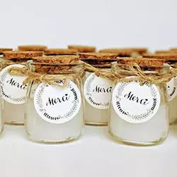 Les bougies sont des objets esthétiques et simples à offrir à vos invités. Vous pouvez les personnaliser facilement par leur taille, leur couleur, la senteur qu’elles dégagent. Un joli contenant en verre avec un couvercle en liège et une étiquette avec la date de votre mariage, les initiales de vos prénoms ou un simple merci sauront faire plaisir à vos invités. Plusieurs sites proposent des personnalisations de ce type et il est donc facile de trouver ce que vous souhaitez !