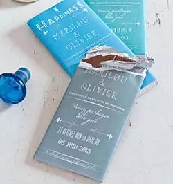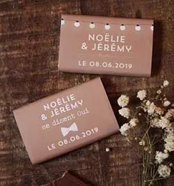 Pour des remerciements gourmands, choisissez d’offrir à vos invités une vraie tablette de chocolat entièrement personnalisable !