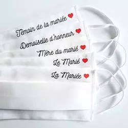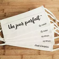 Aujourd’hui, les masques font partie intégrante de votre célébration et deviennent un accessoire incontournable aux tenus festives. Pourquoi ne pas créer ceux-ci spécialement pour votre mariage, vos invités seront tous protégés, accordés et, en prime, repartiront avec un souvenir. Vous pouvez y ajouter un étuis ou une pochette porte masque, très pratique et réutilisable !