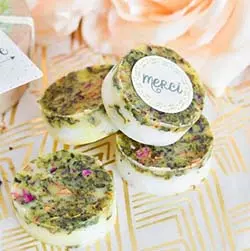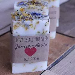Vous souhaitez réaliser vous-même les cadeaux pour vos invités ? Pensez aux savons ! Très simples et économiques, ces jolis savons home made sauront faire plaisir à vos invités. Vous pourrez en choisir la forme, la couleur et décidez de les personnaliser comme bon vous semble ! L’emballage choisi contribuera également à les particulariser.