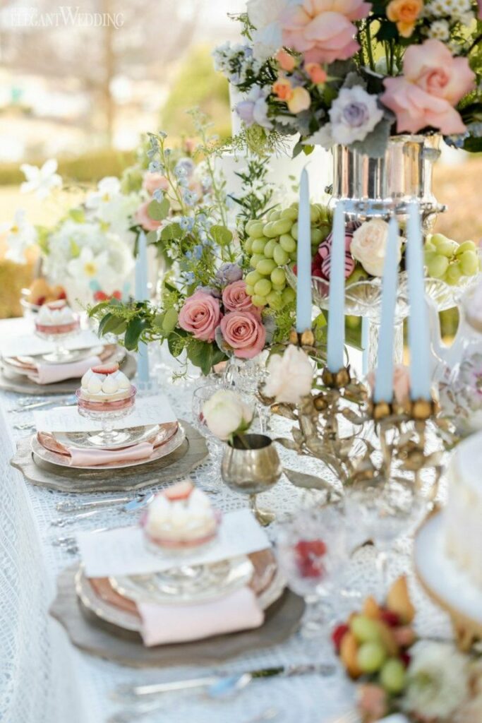 On peut se permettre de sortir la belle argenterie. On va pouvoir impressionner avec les assiettes en choisissant des motifs, des dorures. Les fleurs accompagnent évidemment les tables, les chaises, mais on veut tout de même que cela reste élégant ! IL ne faut pas oublier, les bougies, sous différentes formes, et on pense aussi aux miroirs pour créer des reflets, dans les salles de balles c’est souvent que l’on retrouve d’immenses miroirs. En résumé, laissez le prince ou la princesse qui est en vous faire la déco !