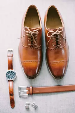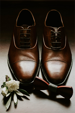 La tenue du marié doit être parfaite de la tête aux pieds ! Il faut donc trouver des chaussures idéales pour votre mariage. Cette pièce indispensable doit avant tout vous ressembler. Que ce soit des baskets décontractées, des derbys, des mocassins ou des Richelieu raffinés, choisissez le modèle qui vous plaît ! Vos chaussures pour le jour J doivent rester confortables et être à votre style. Si vous êtes plus à l’aise en basket, eh bien optez pour des baskets ! Vous avez aussi la possibilité d’accorder vos chaussures et accessoires ensemble, libre à vous de faire comme bon vous semble ! Pour ce qui est d’associer les couleurs, si votre costume est noir alors penchez plutôt pour des chaussures noires. En revanche pour un costume plus moderne dans les tons bleus, privilégiez des chaussures marron.