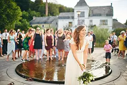 Ah l’incontournable et traditionnelle jarretière ! Cette pratique, issue du Moyen Âge, était utilisée par les femmes. Celles-ci accrochaient un ruban en dentelle sous leur genou afin de tenir leurs bas. Puis, ce rituel a évolué au fil des années et les femmes remontaient leur jarretière en haut des cuisses, ça en est même devenu un jeu. Afin de mettre un brin de folie et de vintage à votre mariage, vous pouvez mettre en place ce jeu traditionnel de la jarretière ! Le but est simple : les hommes veulent apercevoir la jarretière de la mariée. Pour cela, ils enchérissent afin que celle-ci lève sa robe. Quant aux femmes, elles enchérissent pour que la mariée abaisse sa robe. Finalement, cette tradition occidentale est très prisée en France ainsi qu’aux États-Unis. Néanmoins, en Espagne la même coutume est revisitée avec la cravate du marié !