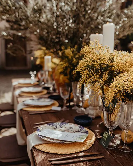 Si vous choisissez la période des fêtes, le thème de noël n’est pas à écarter. Pour une ambiance chaleureuse, lumineuse et qui invite au partage c’est parfait. Alors, pensez au sapin ! Eh oui, noël ce n’est pas que la réunion sous le sapin le 24, il peut aussi se prêter au jeu du mariage et représenter l’esprit de partage, d’amour et de bienveillance dans un couple. Attention tout de même à ce qu’il ne vole pas la vedette ! Et en guise de rituel, vous pouvez demander à vos invités d’accrocher leurs vœux dans celui-ci.