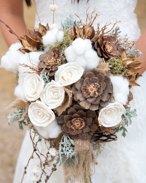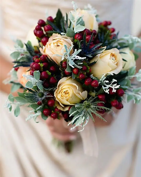 Pour accompagner ces jolies fleurs, des pommes de pin, épicéa, ou baies seront parfaits.