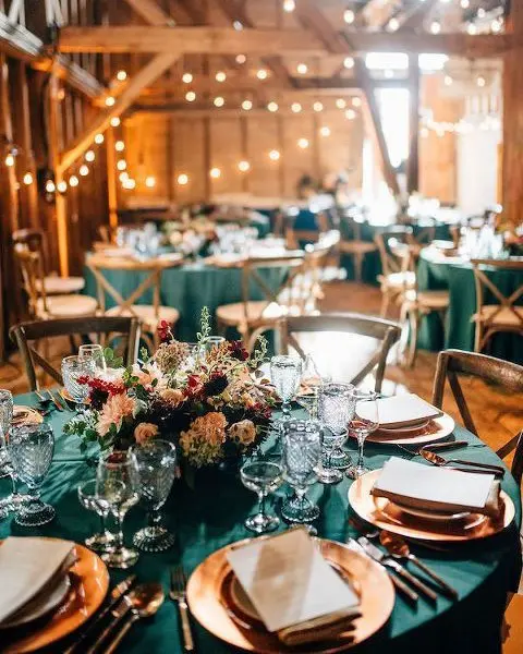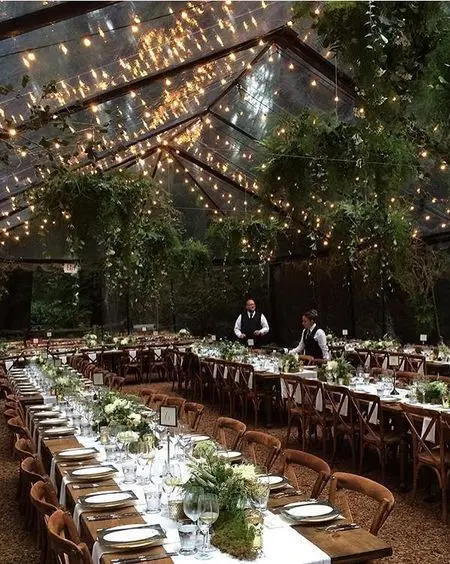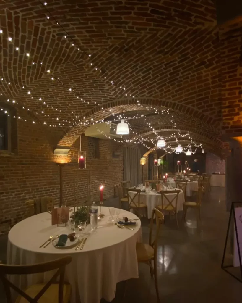 Pour garder cet esprit de chaleur et de réunion, l’aspect du lieu va beaucoup jouer également. On vous conseille de choisir une salle aux poutres apparentes, en briques, avec des voûtes ou un plafond plus bas. Elles rappellent le côté rustique de l’hiver, l’ambiance “ferme” et “maison familiale” où l’on a généralement l’envie de se retrouver par temps froid. De plus, on pourra y créer une ambiance tamisée très agréable. Vous pouvez également opter pour une orangerie. Avec ses baies vitrées, elle permet d’être à l’abri et au chaud en intérieur sans vous priver de la lumière extérieure. Parfaite pour créer un véritable jardin d’hiver.