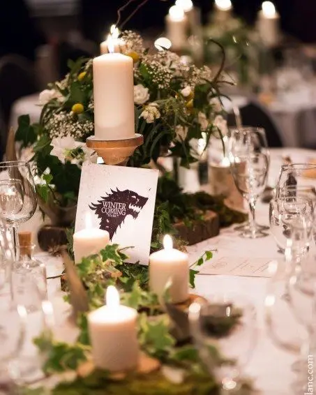 • Winter is Coming : L’univers de Game Of Thrones pourra particulièrement bien s’adapter à cette ambiance hivernale. Buffet à partager, trône de fer pour la cérémonie, il y a de quoi faire !