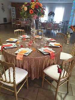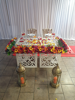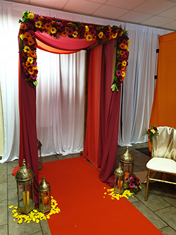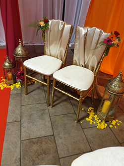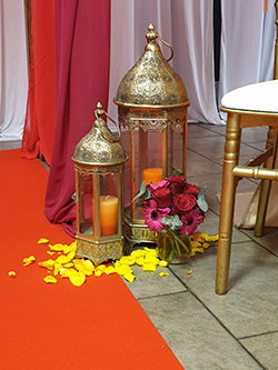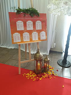 Du doré, du rouge flamboyant, du fuchsia, de l’oranger: nul doute, le thème Bollywood était bien respecté ! De la cérémonie à la décoration de la salle de réception, tous les éléments de déco avaient été bien pensé. Un vrai voyage !