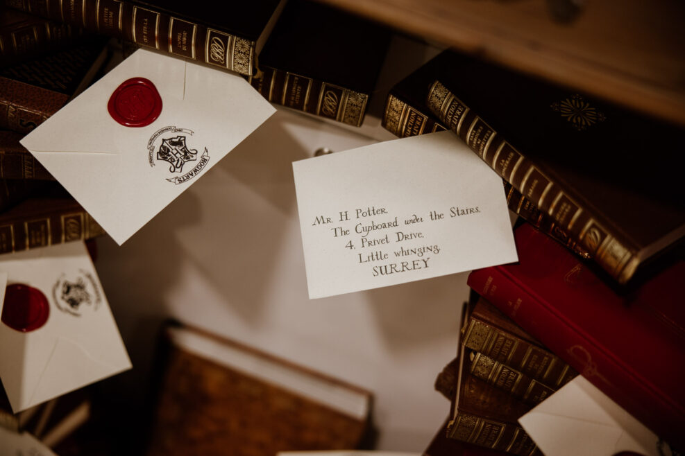 On commence par une question classique lors de nos rendez-vous : “Avez-vous une idée de thème pour votre mariage ?” Ce à quoi Anaïs et Thomas m’ont répondu : “Oui oui Harry Potter !”. Très bien c’est noté, quelques moodboards par-ci, quelques décorations par-là et on part pour un joli mariage à Poudlard !