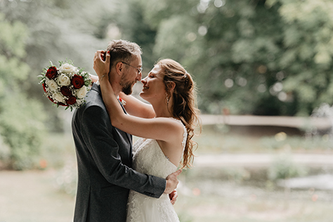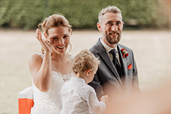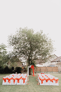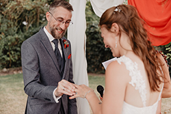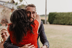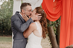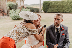 La cérémonie était très émouvante, parsemée de rires et de larmes de joie. J’en garde un très bon souvenir. Nous l’avons réalisée dans le grand jardin de leur salle de réception, à l’abri du soleil, sous les branches d’un grand arbre. C’était très cosy ! Parfait pour accueillir les discours de leurs proches, et toute l’émotion qui va avec.