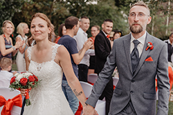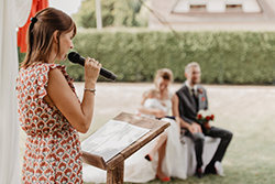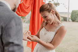 Sabrina et Manu ont choisi de faire une cérémonie laïque. Cela leur ressemblait beaucoup plus qu’une cérémonie religieuse. Alors nous avons préparé cela pendant quelques mois, afin de leur permettre d’avoir un magnifique moment.