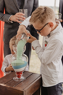 En rituel, ces deux amoureux avaient choisi celui du sable, qu’ils ont réalisé en famille. C’est toujours un magnifique moment quand on peut faire intervenir nos enfants pendant le mariage. Ils en garderont un souvenir partagé.