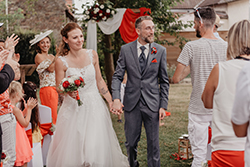 Puis, sous une ambiance chaleureuse, acclamés par leurs invités, ils ont fait une sortie de cérémonie festive !