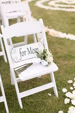 Vous pouvez également rendre hommage à vos proches sans nécessairement avoir à le dire avec des mots. Réservez-leur une place avec un accessoire qui vous fait penser à cette personne. Vous pouvez disposez sur une chaise une photo dans un jolie cadre ou indiquer son prénom sur une pancarte. Ecrivez une citation ou un extrait de paroles de chanson. Vous pouvez préférer mettre en avant quelque chose de plus personnel encore, en disposant un accessoire qui lui appartenait : un vêtement, un chapeau, un bijou, un objet, un morceau de tissu…
