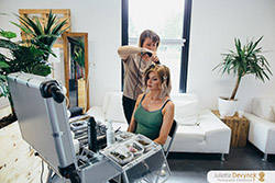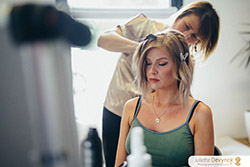 Anaïs, sa future épouse, est déjà en train de se faire sublimer par le savoir-faire et l’expertise de Bita. Puis, c’est Sophie, de Sweet home coiffure qui prend le relais. Elle adapte son choix de coiffure à l’ensemble: la robe, le maquillage, la personnalité d’Anaïs. Elle choisit donc plutôt un chignon bas, qui vient parfaire l’ensemble. La robe de mariée reste bien évidement la pièce maîtresse ! Isabelle, de Mariée Couture, a choisi deux modèles pour ce jour spécial. La première, d’une élégance rare, allie finesse et simplicité au charme de la dentelle. Anaïs est incroyable dans sa précieuse !