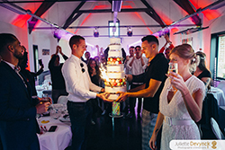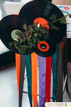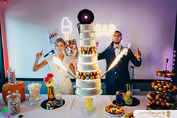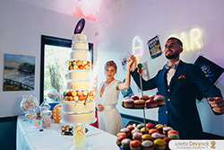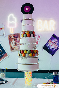 Pour recharger les batteries, voici venu le moment tant attendu de la journée: la pièce montée ! La pâtisserie Le Touret a créé une merveilleuse pièce. Un gâteau surmonté d’un ancien vinyle. Evidemment, nos DJs ont prévu toute une mise en scène pour faire de ce moment un spectacle ! Lumière et musique: l’instant est incroyable ! Chacun se régale à la fois avec une part de gâteau mais aussi avec les choux pop et colorés, pétillant en bouche.