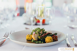 Avant de s’ambiancer sur le dancefloor, Maxime et Julie ont prévu de ravir les papilles de chaque invité. Des assiettes colorées et hyper appétissantes vont les surprendre tout au long du repas. En plus de proposer un lieu de réception d’exception sur la région lilloise, La Ferme Saint Chrysolle assurent aussi la partie traiteur, tout aussi exceptionnelle.
