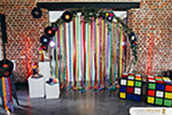 En arrivant dans la salle de la cérémonie: Wouah ! Une immense arche ronde hyper colorée les surprend. On croirait même à un passage spatio-temporel, ça tombe bien, puisqu’ici, on joue avec le temps ! Tout le monde est installé ? Francis, de O-Live Productions lance le son !