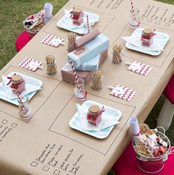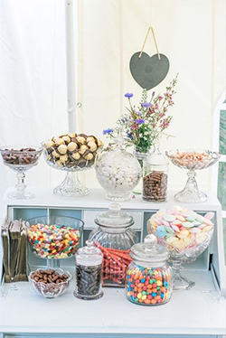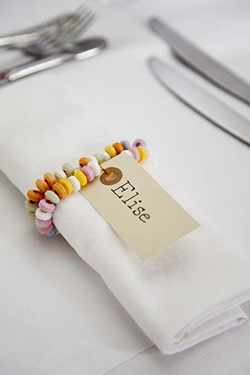 - Marques places originaux comme des flacons à bulles personnalisés, des colliers de bonbons autour des serviettes de table…