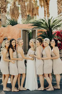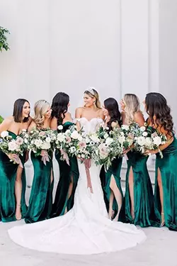 Ces demoiselles d’honneur harmonieuses dans les mêmes tons vous soutiendront jusqu’au jour J ! Pour ce qui est de la tradition d’avoir des robes assorties, celle-ci provient de l’antiquité Romaine. Selon la légende, les jeunes femmes qui accompagnent la mariée s’habillent à l’identique afin d’éviter que les esprits s’en prennent à elle. Certains aspects de ce mythe sont restés ancrés puisque aujourd’hui, les demoiselles d’honneur sont toutes vêtues de la même couleur lors de la cérémonie. La mariée quant à elle doit avoir une tenue unique pour la distinguer de ses amies. Afin de célébrer votre mariage, choisissez des demoiselles d’honneur avec qui vous partagez un lien important. Ainsi, elles vous suivront tout au long de votre journée, pour vous accompagner, pour vous faire rire, et pour vous faire danser ! Tout compte fait, elles seront à vos côtés sur vos photos pour des souvenirs impérissables de cette journée !