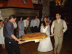 Puis arrêtons-nous en Vendée. Ici, on laisse de côté l’ombrelle pour porter … la brioche vendéenne ! Lors de cette tradition, les invités dansent en rythme et passent sous une gigantesque brioche. Oui sous la brioche, vous avez bien lu ! Et évidemment, après avoir célébré le rituel, chaque invité peut goûter à cette délicieuse viennoiserie. Mais vous vous demandez sûrement pourquoi une brioche ? Eh bien cette pâtisserie est généralement offerte par les parrains et marraines des futurs mariés et selon la coutume, la brioche vendéenne est associée à tous les moments heureux de la vie, dont les fêtes de mariage !